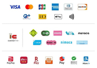 各種クレジットカード、交通系ICカード、電子マネー決済がご利用頂けます。